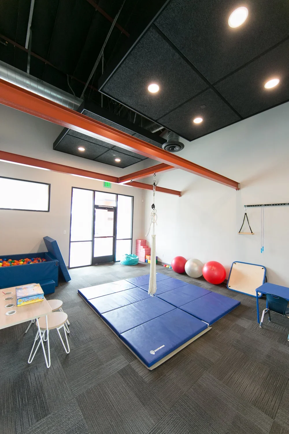 Exterior site improvements feature an over-flow parking lot doubling as a play court for outdoor basketball and additional court games, and also includes a picnic lunch area and Game Storage Room. The new driveway, retaining walls, staff parking lot with bike racks, trash enclosure, and accessible concrete ramps and stairs. Spanning approximately 8,300 square feet, this project delivers a safe, engaging, and thoughtfully designed environment for learning and recreation.