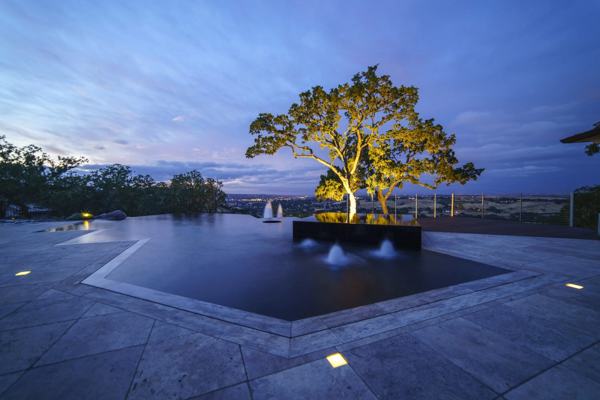 This Paso Robles custom residence showcases clean lines and warm wood tones, thoughtfully designed for both everyday living and entertaining. The home features spacious living areas focused on a covered entertainment wall and a corner fireplace, and a gourmet kitchen. The interior opens onto a large, covered patio with large 3-paneled sliding glass doors tucked into a pocket for full access.